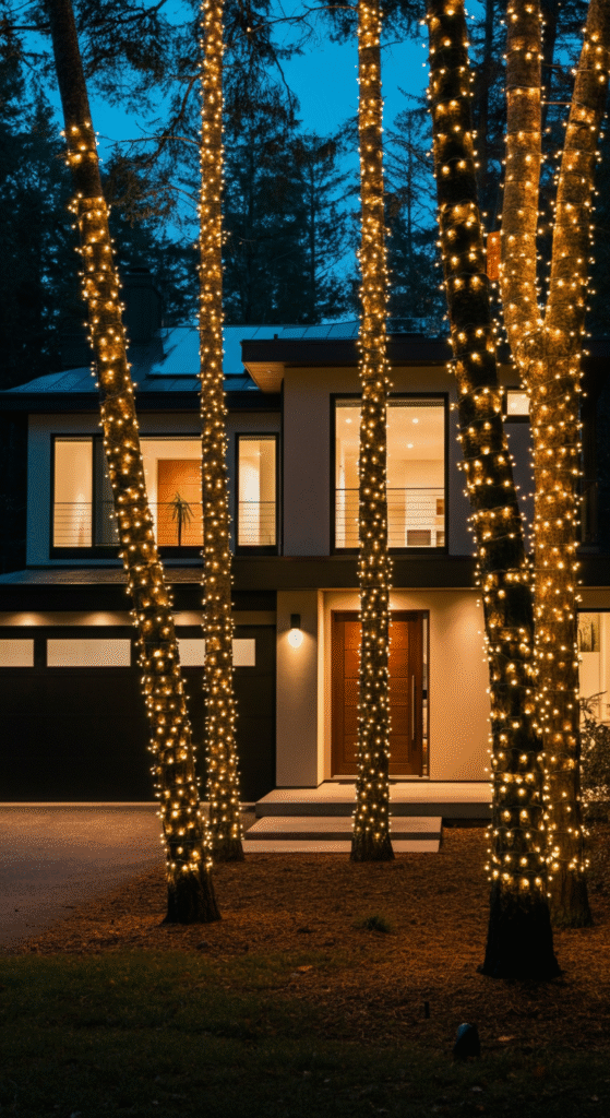 5. Tree Wrap Lights with Minimalist Symmetry