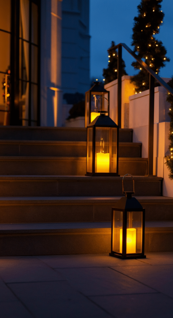 6. Lantern-Style Outdoor LED Candles on Steps and Patios