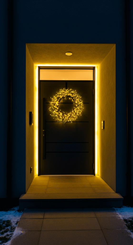 7. Minimalist Wreath Lights and Door Frame Illumination