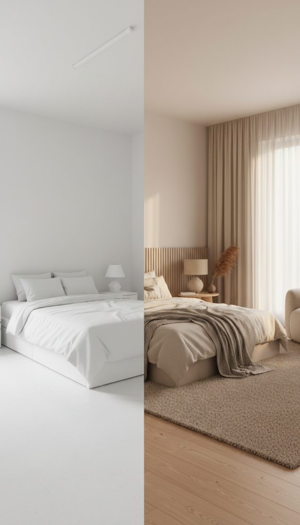 While white is a staple of minimalist design, relying on it exclusively can make your bedroom feel like a hospital ward rather than a retreat. Without contrast, the eye has nowhere to rest, and the room lacks depth.