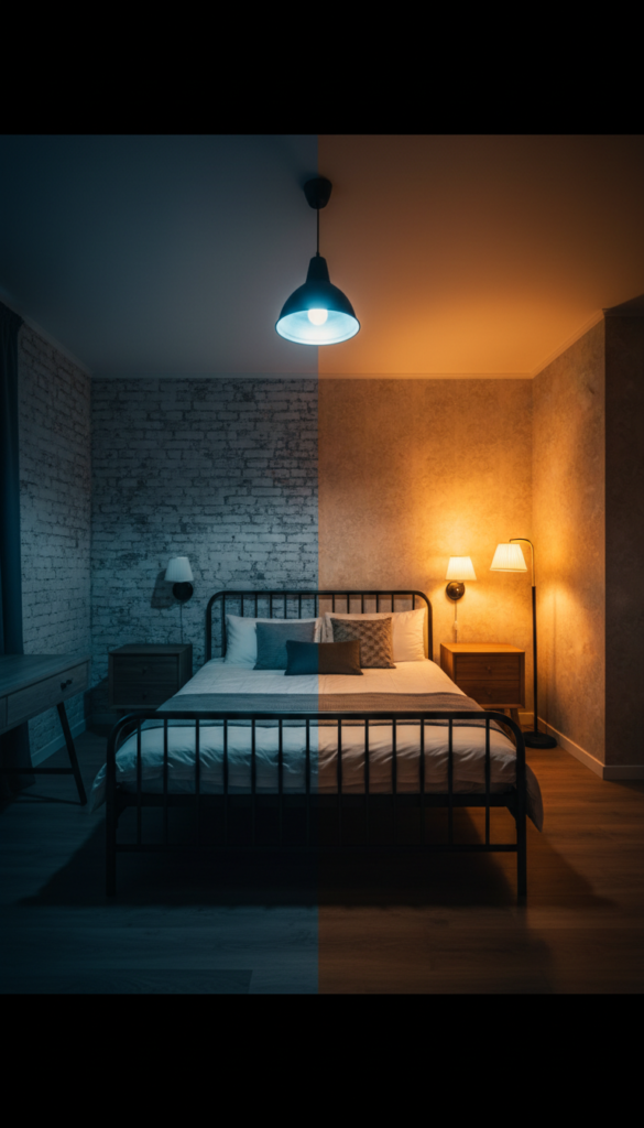 - Use warm-toned LED bulbs (2700K-3000K).
