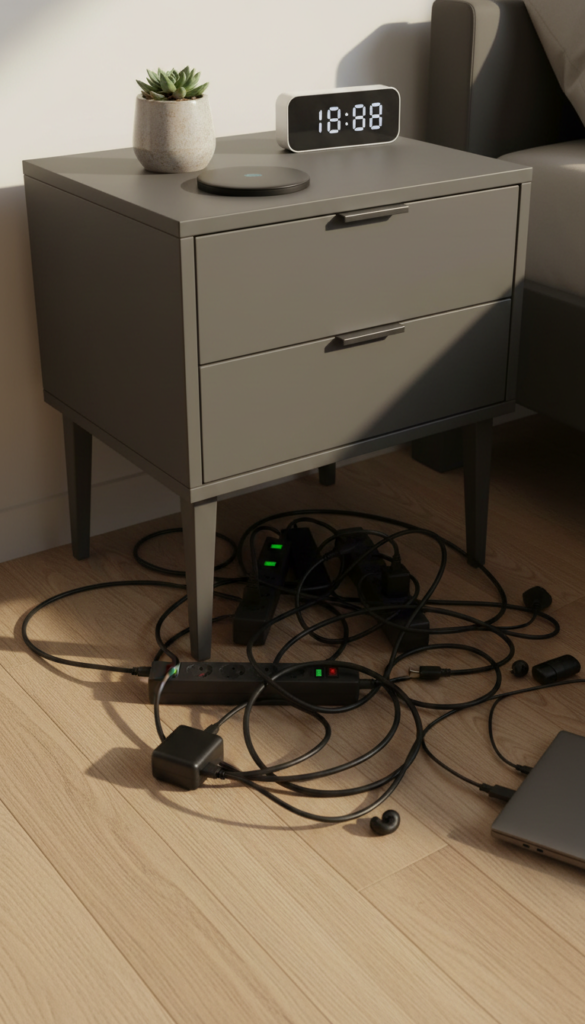Nothing ruins a clean line faster than a tangle of charging cables. In a maximalist room, you might hide them behind decor. In a minimalist room, there is nowhere to hide.