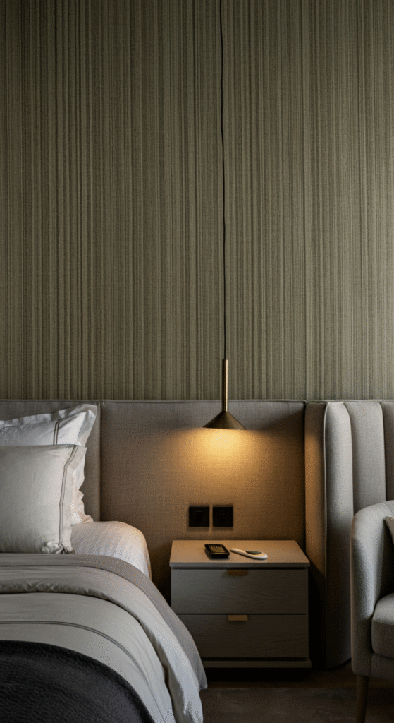 Yes, textured wallpaper adds depth and a premium feel without making the room look busy.