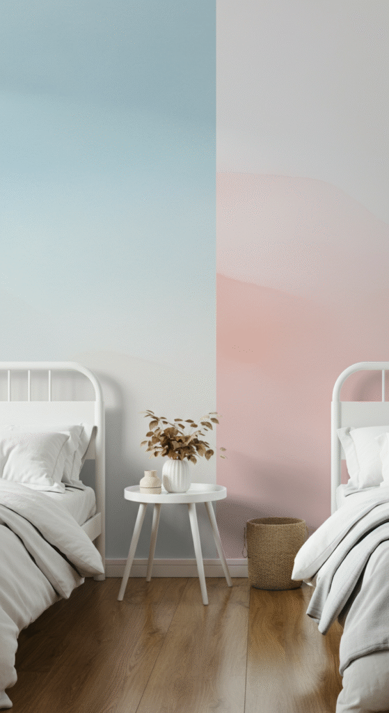 Pastel wallpaper also pairs well with modern bedding, light wood furniture and minimal decor, giving the entire room a light, airy glow.