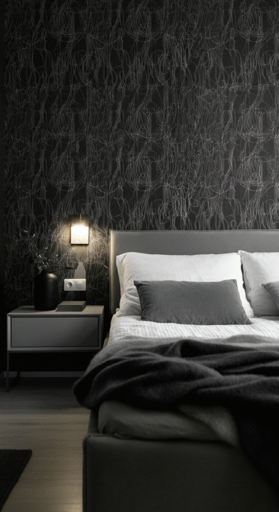 Black and white wallpapers are the simplest way to get a modern contrast without making your bedroom feel heavy.