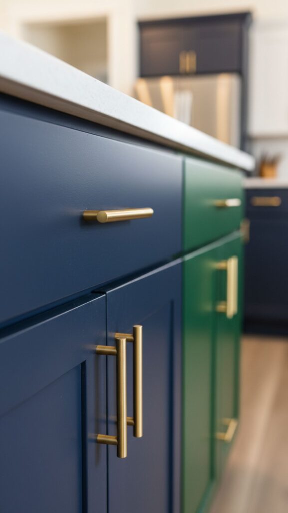 - Mix with navy blue or forest green cabinets for a trendy, rich look.