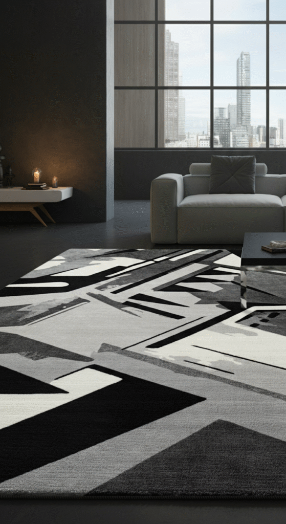 Did You Know? Abstract patterns on rugs allow you to express creativity without committing to a specific style. You can choose anything from bold, angular lines to softer, organic shapes that create movement and flow in the space.