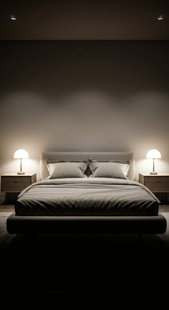 Do you know warm light can improve sleep quality? Soft lighting signals the body to relax, making minimalist bedrooms feel more restful at night.