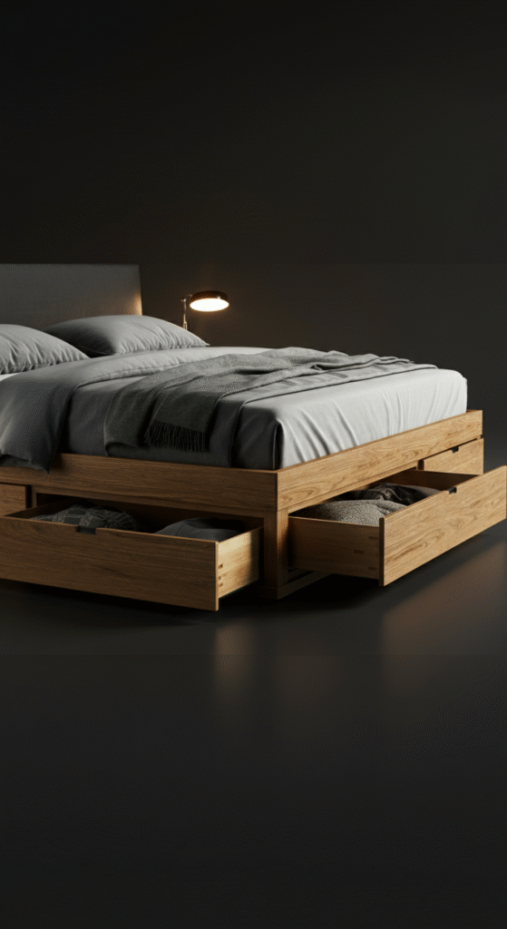 A minimalist bed frame not only enhances the room’s aesthetics but also maximizes storage space, helping you keep your room organized and clutter-free.