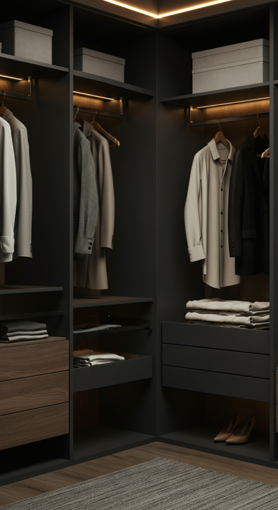 Modern homes value efficiency and organization, and that includes your wardrobe space. A cluttered room will always feel chaotic, so invest in storage solutions that allow you to keep your belongings neat. Custom wardrobe systems, open shelving, or wardrobes with mirrors are all great options for maintaining a modern aesthetic.