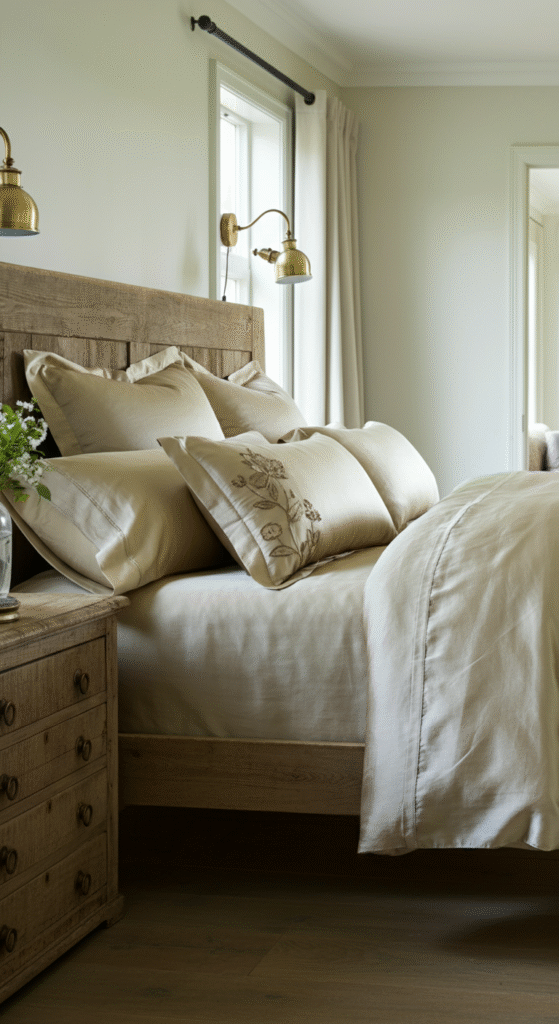 For a rustic farmhouse with an elevated twist, consider pairing wooden furniture with luxury touches such as marble countertops or polished brass fixtures. A vintage wooden bedframe paired with silk bedding creates an inviting, warm, yet elegant space. Opt for soft neutral tones like beige and taupe to maintain a cozy vibe while still looking chic.