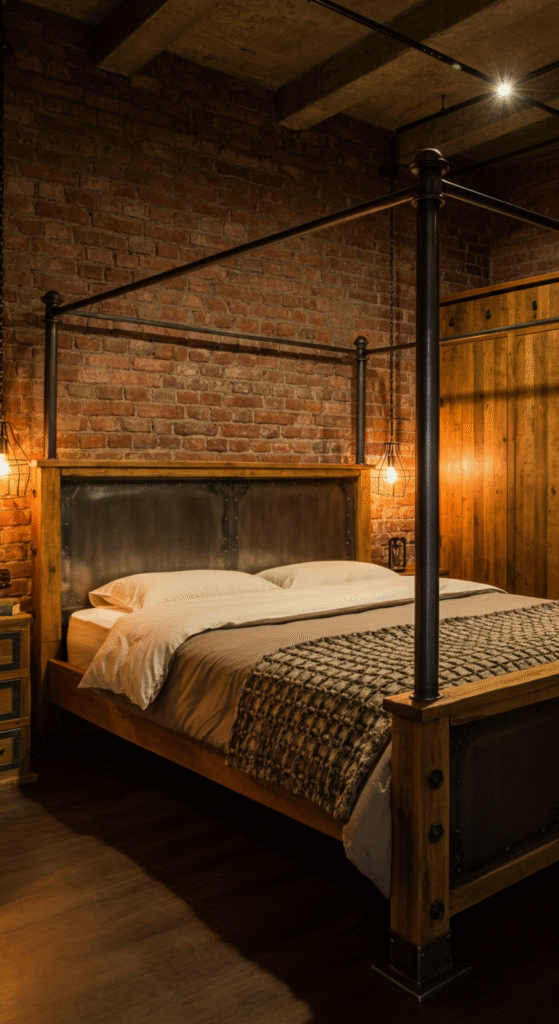 If you love the raw, unfinished look of industrial design combined with rustic elements, this layout is for you. Use reclaimed wood for the bed frame and furniture, then balance it with elements like steel lighting fixtures and metal bedposts. The contrasting materials—wood and metal—create an intriguing aesthetic, while maintaining the rustic warmth you desire.