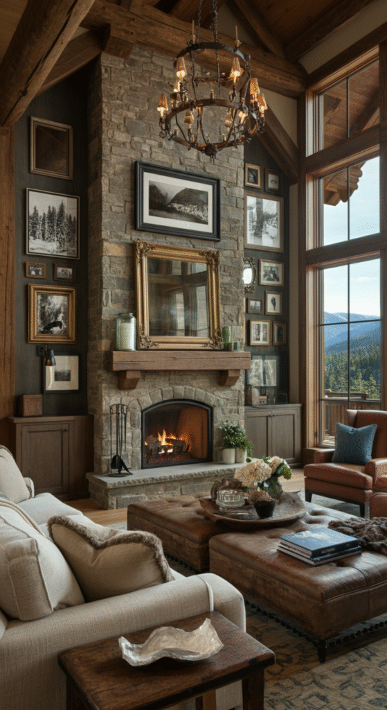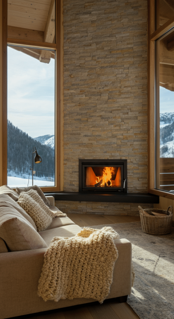Add soft lighting and plush seating nearby, and you’ll have a living room that feels like a luxurious mountain retreat.