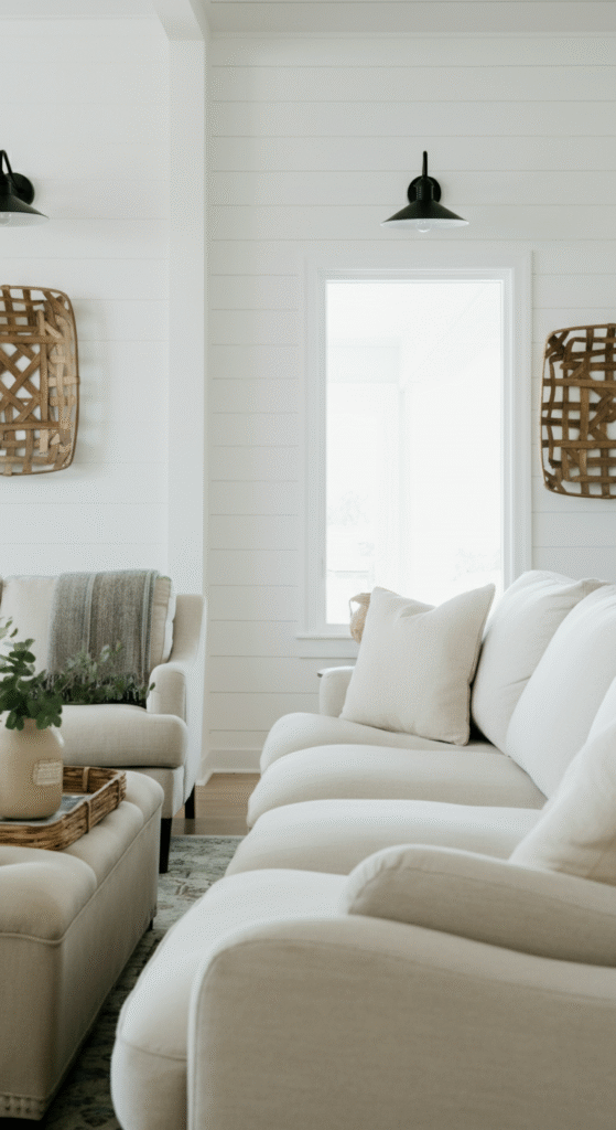 Shiplap, once a humble barn staple, has made a grand comeback — and it’s not just for farmhouses anymore. Modern rustic-chic interiors use shiplap in creative ways, from crisp white walls to black-painted planks for bold contrast.