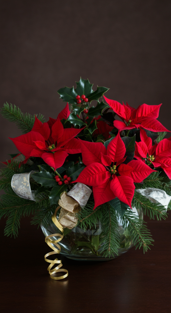 Interesting fact: Poinsettias are native to Mexico and are said to symbolize the Star of Bethlehem in the Christmas story. They’ve become synonymous with the holiday season, making them the perfect flower for your centerpiece.
