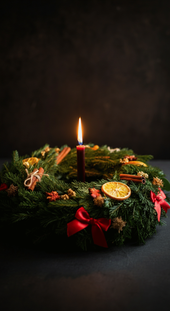 If you’re looking for something a bit more extravagant, why not create a wreath centerpiece? Start with a wire wreath form and add fresh or faux greenery. You can embellish it with ribbons, small ornaments, and even cinnamon sticks or dried orange slices for a fragrant touch. Place a candle in the center for an elegant and festive look.