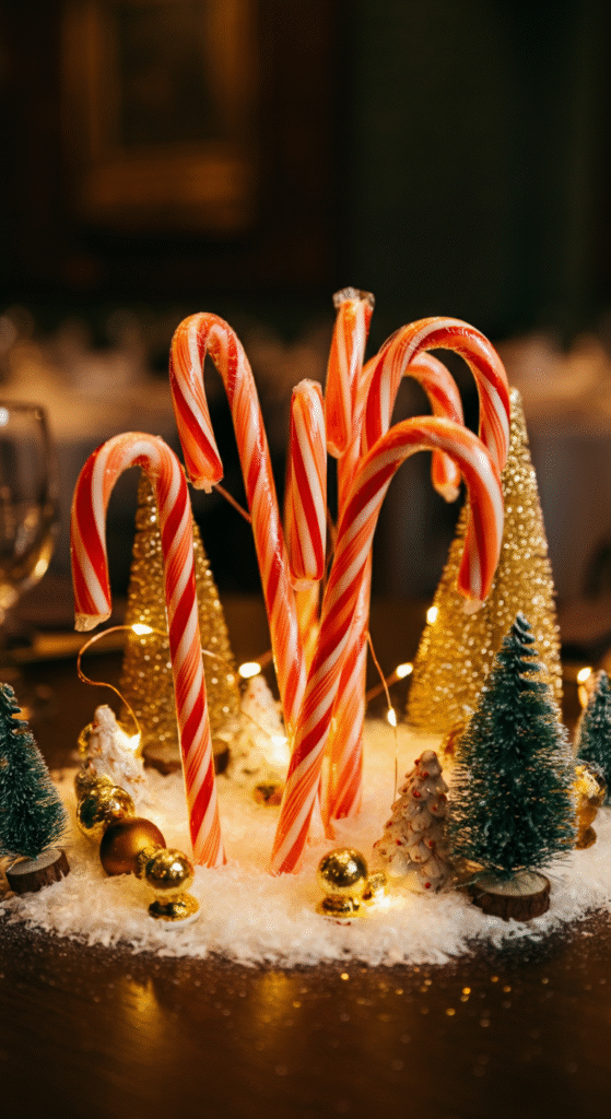 Arrange large candy canes in a forest-like formation, and add faux snow, glitter, or small ornaments to complete the look. It’s perfect for a fun and festive vibe.
