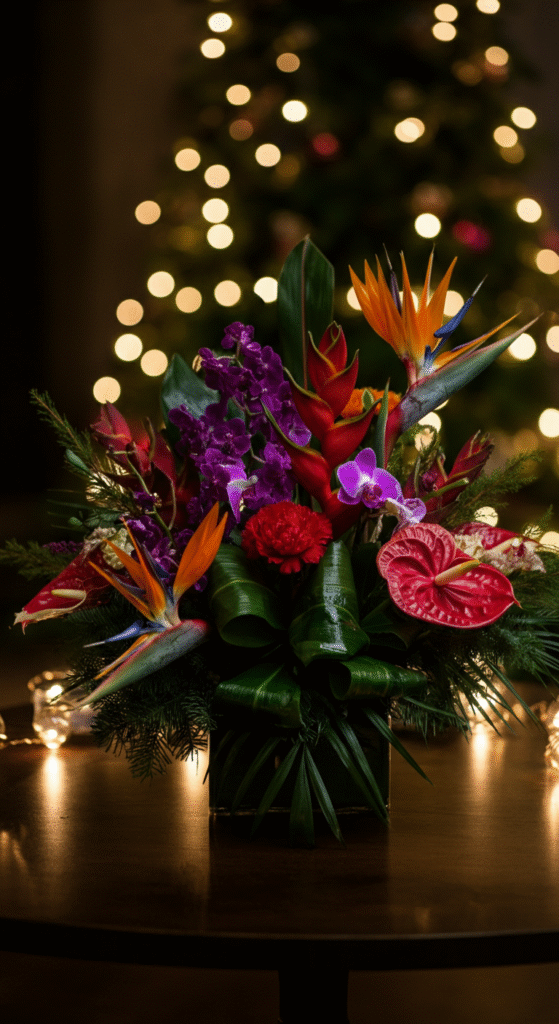 If you’re looking for something outside the traditional floral options, why not bring tropical blooms into the holiday mix? Orchids, hibiscus, and bird of paradise flowers are excellent choices for a festive twist.