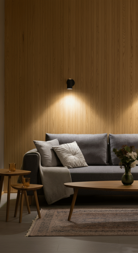 One of the best ways to soften the cool tones of a grey couch is by incorporating warm wooden elements into your living room. Wooden coffee tables, side tables, or even a wood-paneled accent wall can add an earthy, natural element that balances the overall look of your space.