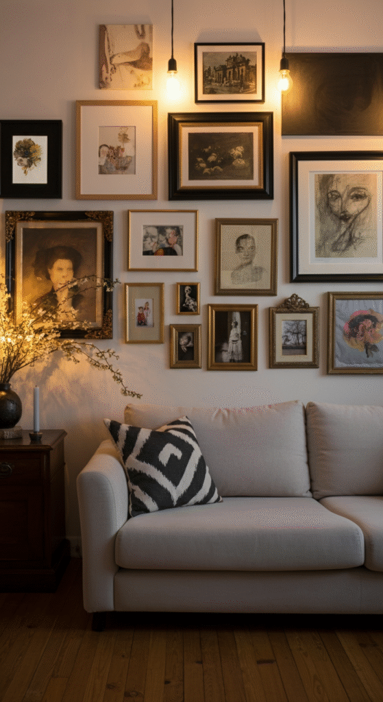 • Use art that reflects your interests, whether it’s abstract paintings, family photos, or vintage posters.