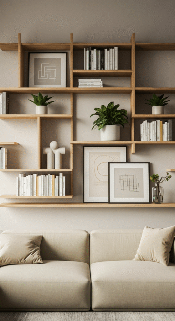 If you’re looking for both functionality and design, a wall of shelves is a perfect option. Not only does it provide storage, but it also doubles as a space to display your favorite books, plants, and decorative objects.