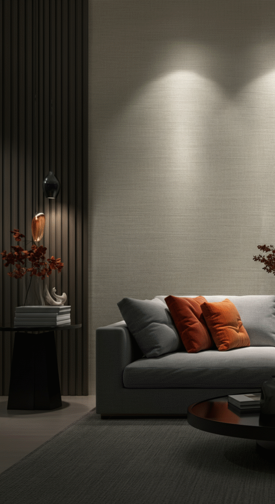 Wallpaper is making a major comeback, and for a good reason. Textured wallpaper adds both pattern and depth to a living room feature wall, giving it a sophisticated yet dynamic touch.