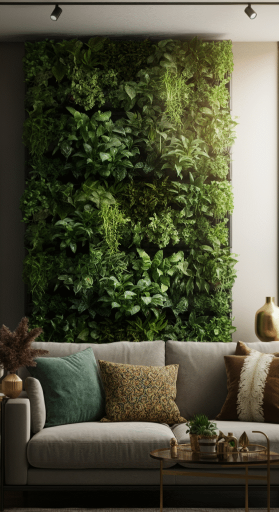 Bring nature indoors with a living green wall! Perfect for those who love plants, this feature wall idea can transform your living room into a serene oasis.