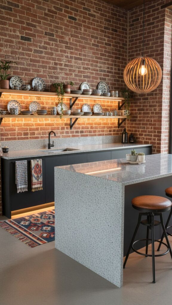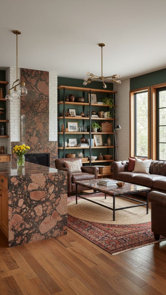 For an “industrial boho” vibe, Steel Grey granite provides a neutral, slate-like canvas. It pairs well with exposed brick, metal piping, and soft bohemian textiles that take the edge off the industrial hardness.