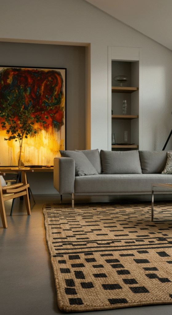 If you’re looking for something more dynamic, a jute rug featuring bold geometric patterns will add a modern twist to any living room.