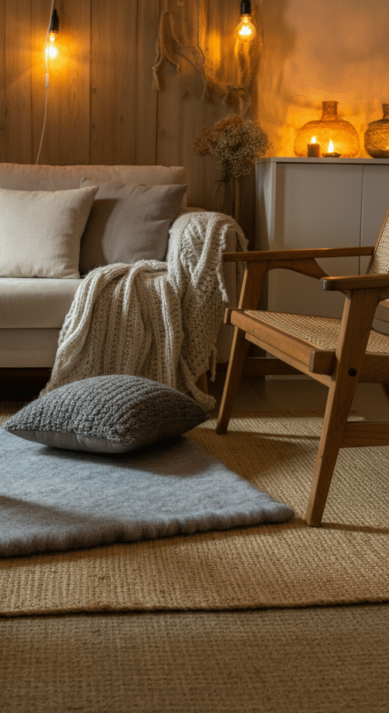 Layering rugs is a great way to add depth and interest to your living room. Combine a jute rug with a plush wool rug on top to create an inviting and comfortable environment. The jute base adds structure and texture, while the wool rug provides softness and warmth underfoot.