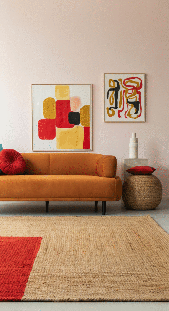 While jute is typically associated with neutral tones, adding a pop of color can bring a new dimension to your living room. Look for jute rugs that incorporate vibrant hues, whether it’s a bold red, calming blue, or a bright mustard yellow. The vibrant color adds personality while still maintaining the rustic charm of jute.