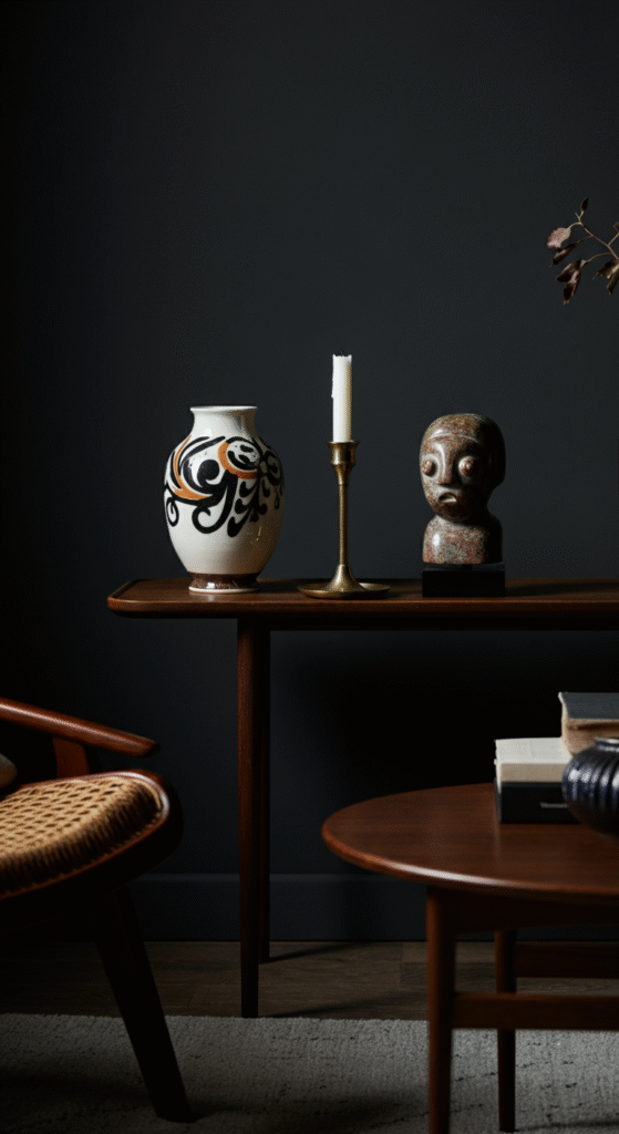 Vintage accessories like brass candle holders, ceramic vases, or quirky sculptures add character to your Mid-Century Modern living room. These items are perfect for adding personality without cluttering the space. The beauty of Mid-Century Modern design is its ability to highlight both form and function, so choose accessories that not only look great but also serve a purpose.