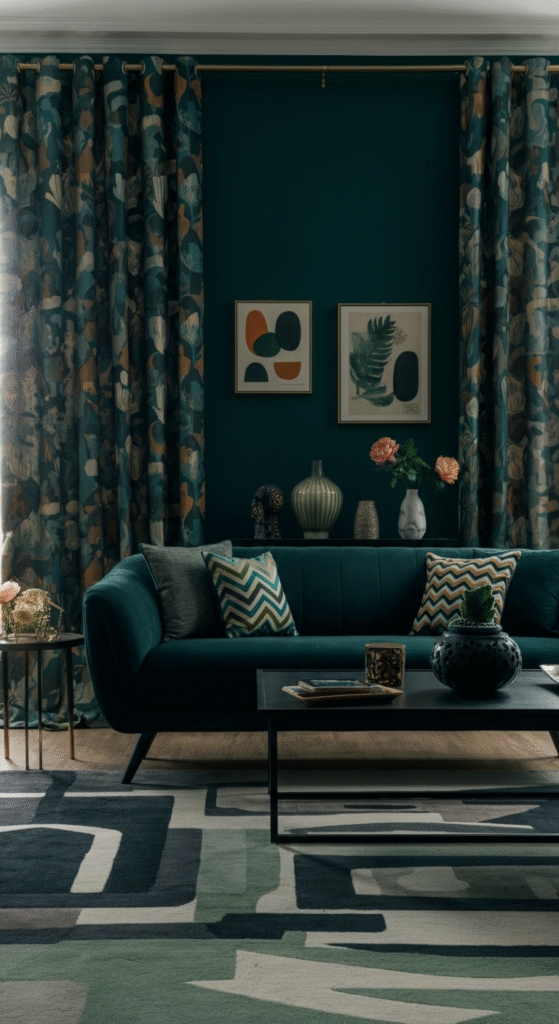 Imagine stepping into a living room that exudes timeless elegance, balanced functionality, and a dash of bold charm.