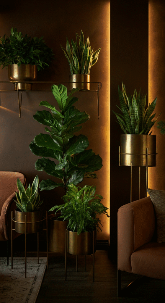 Try to mix different types of plants for texture and variation. If you have large windows, use natural light to your advantage by placing plants near them.