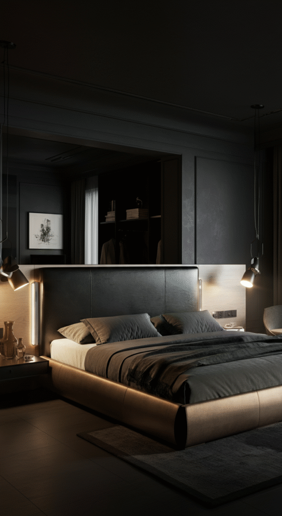 An upholstered bed adds depth to the room while maintaining a soft, inviting feel. Did you know that velvet, in particular, is associated with royalty and elegance, which can make your bedroom feel like a five-star hotel?