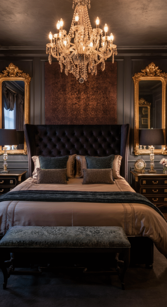 Enhance the traditional look with elegant drapes, vintage-style lamps, and refined accent pieces like gold-framed mirrors or antique dressers.