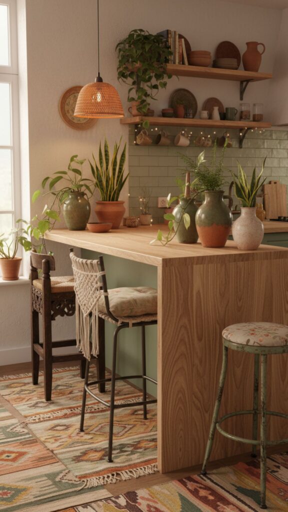 Relaxed, artistic, and full of plants. The boho counter is a collection of textures and global influences. It feels personal and collected over time rather than designed in a day.