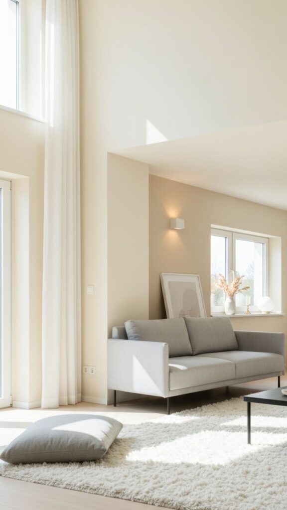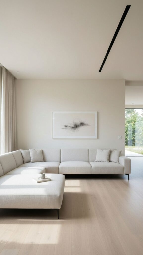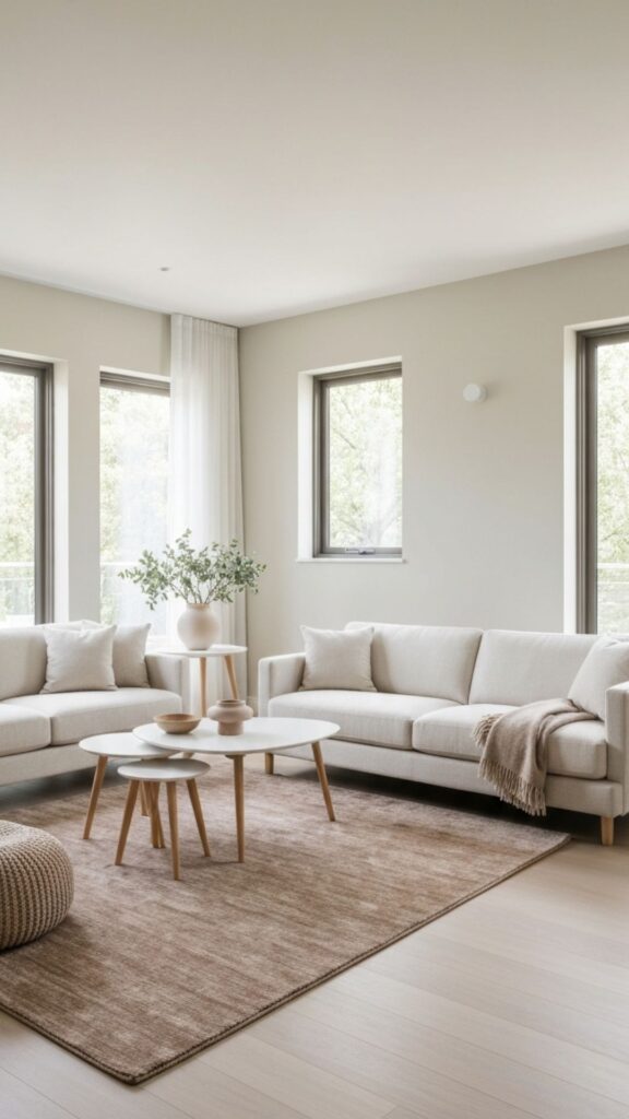 If you want a little personality, add subtle pops of brighter colors through accessories like cushions, rugs, or artwork. The key is to keep the base color palette light and airy.