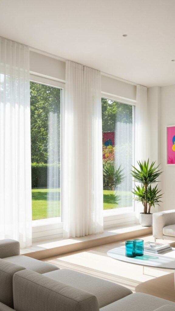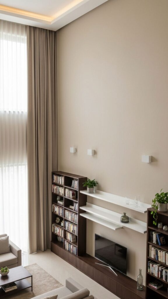 Interesting fact: Research shows that rooms with a strong vertical emphasis, such as high shelves or long curtains, can make a space feel 20-25% taller. Hanging curtains closer to the ceiling rather than directly above the windows can further enhance this effect.
