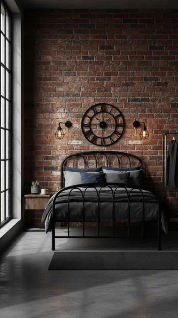• Expose structural elements or use wallpaper that mimics brick/concrete.