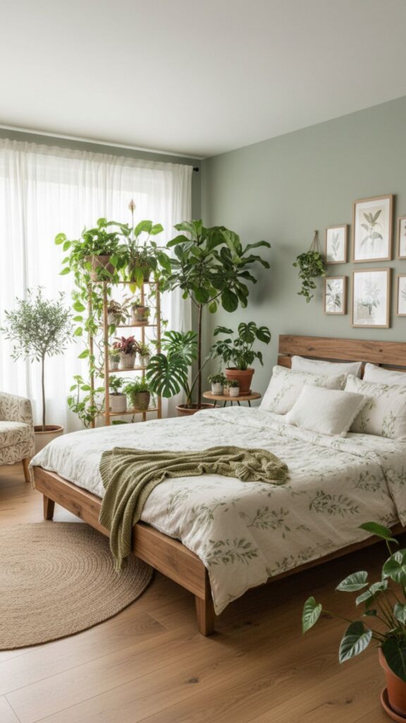 Connecting with nature is a core tenet of many yoga traditions. The Botanical Sanctuary style transforms your bedroom into a living greenhouse. The oxygen-boosting plants improve air quality for better sleep (pranayama), while the lush greenery reduces anxiety.