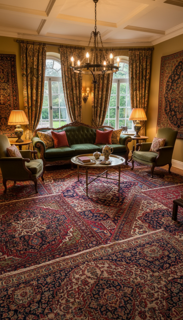 Flooring is often an afterthought, but a Persian-style rug creates a foundation for the entire room. The intricate patterns hide wear and tear, making them perfect for high-traffic areas.