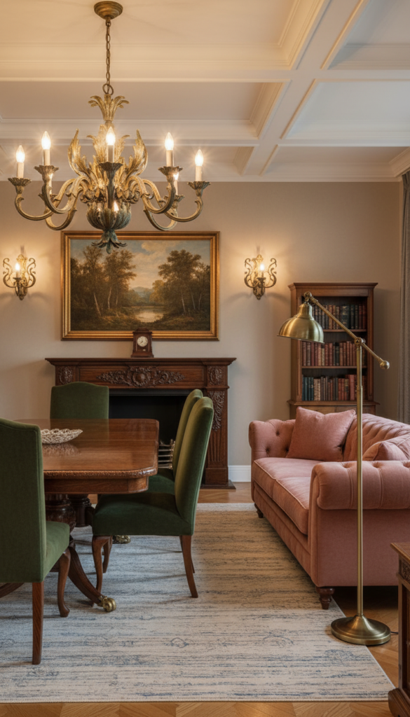 Earthy tones, muted pastels, and creamy whites are staples of vintage decor. Think sage green, mustard yellow, dusty rose, and antique white. Deep jewel tones like navy and emerald also work well for a more glamorous vintage vibe.