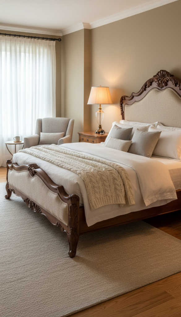 In the Victorian era, the bed was the undisputed focal point of the room. To capture this aesthetic, move away from low-profile platform beds and opt for something with height and presence.
