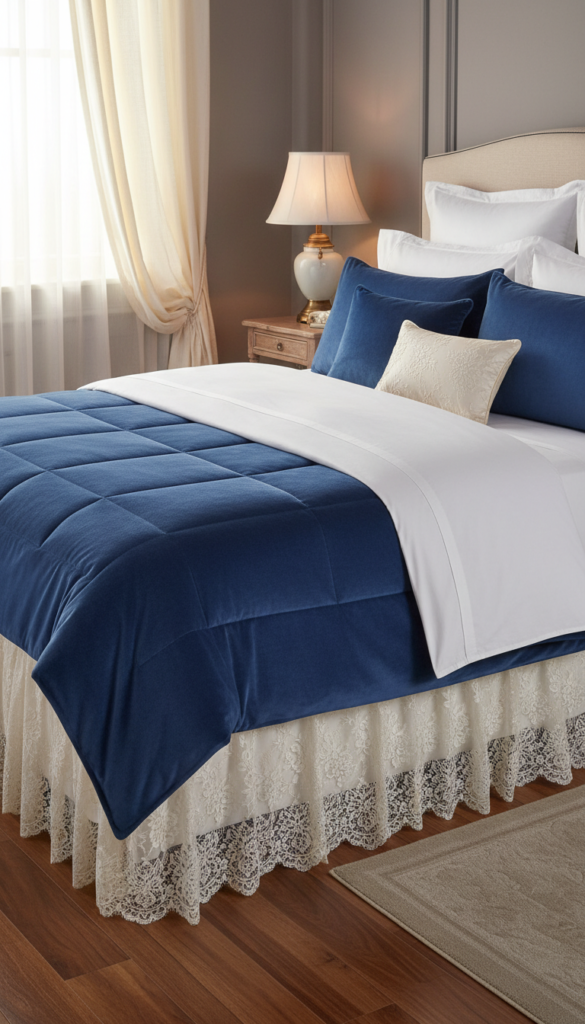 - Add a heavy quilt or comforter in a rich fabric like velvet or brocade.