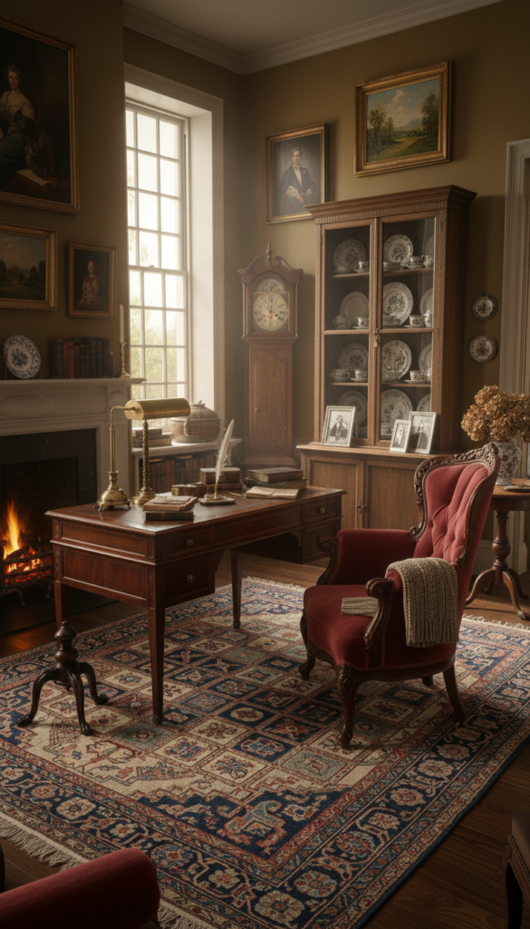 Victorian walls were rarely empty. Art was displayed prominently, often featuring romantic landscapes, botanical prints, or portraits.