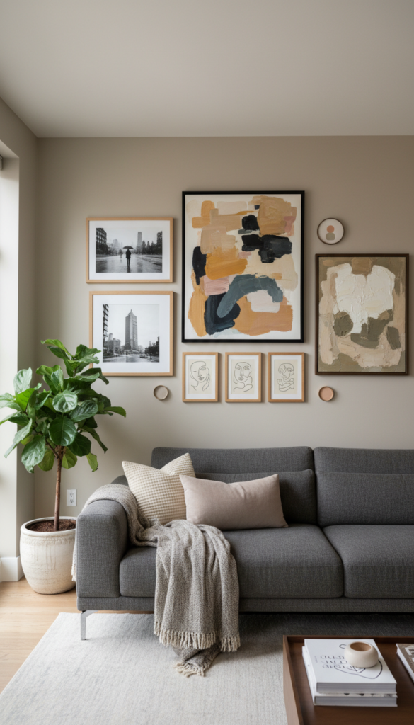 - Create a gallery wall with varying sizes of artwork.