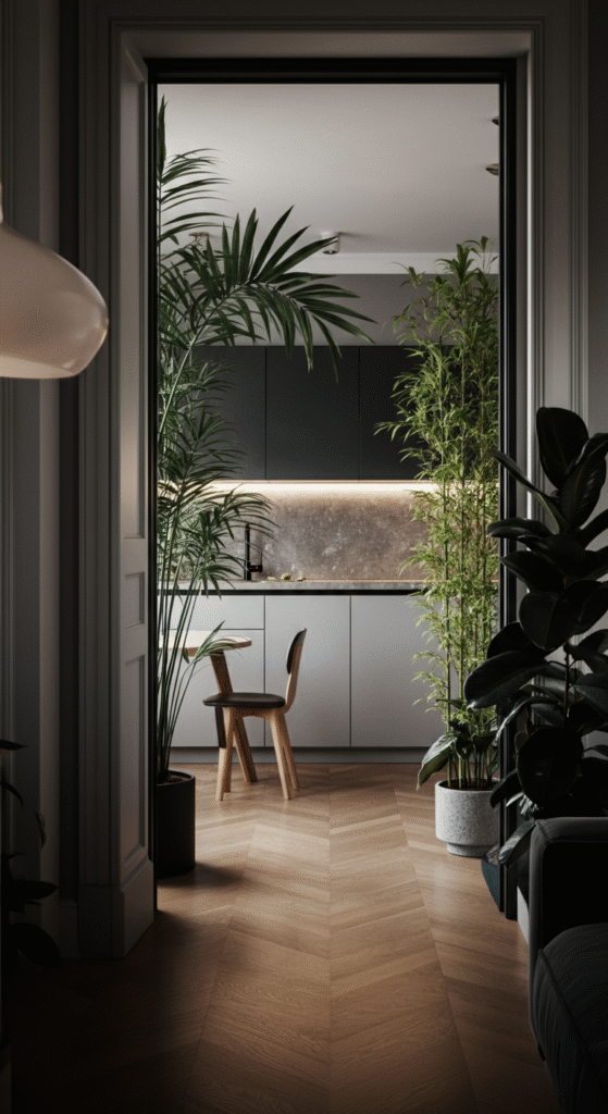 These plants can be strategically placed to create a partition between the living room and kitchen without feeling too obstructive. Plus, the lush greenery brings an element of nature indoors, making your space feel more vibrant and alive.