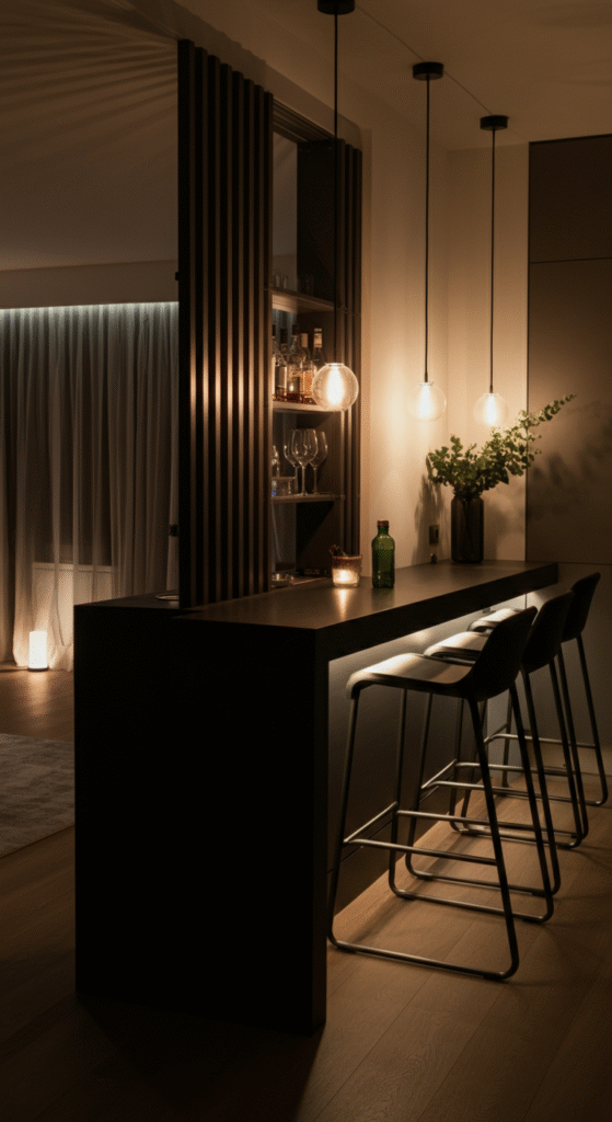 Interesting Fact: A well-designed bar counter partition can serve multiple purposes—acting as a place for casual dining, a workstation for meal prep, and even as a focal point of the room, all while enhancing the overall flow of your home.