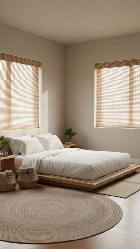 In traditional Japanese interiors, which heavily influence Zen design, furniture often sits closer to the ground. A low-profile bed or seating area grounds the room, creates a sense of spaciousness, and physically emphasizes the act of slowing down and resting.